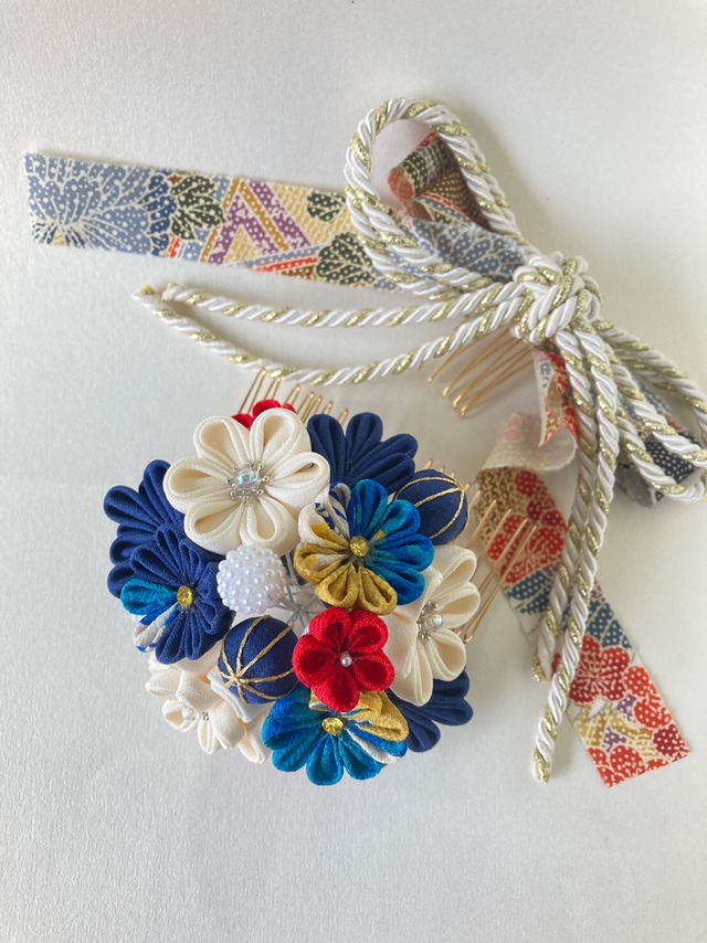 つまみ細工髪飾(kimonoyarn.コードリボン付)
