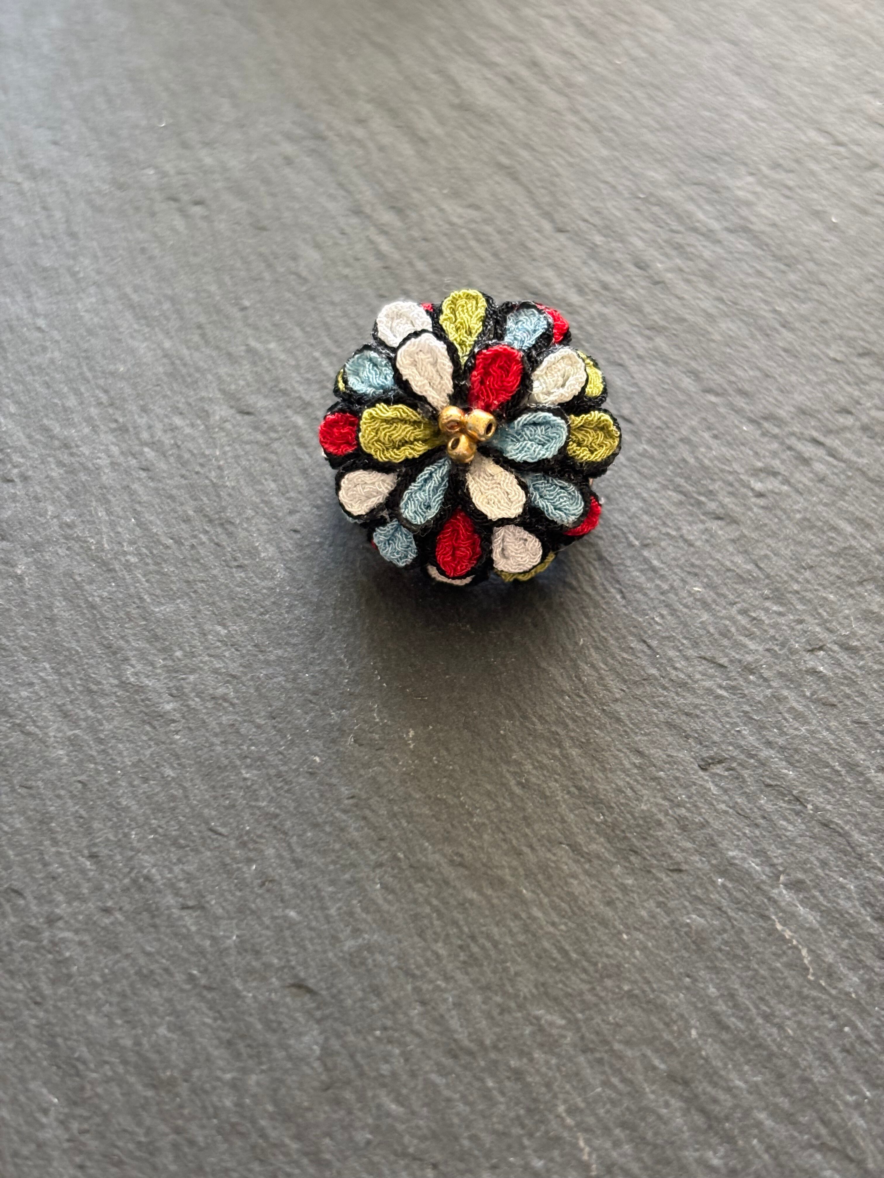 こでまりブローチアクセントは、ちりめん素材を使用したつまみ細工のブローチです。小さなサイズながらも、その存在感が際立つデザインは、コートの襟元やストールに添えることで、シンプルな装いを個性的に引き立てます。華やかさをプラスし、あなたのスタイルに素敵なポイントを加えることができます。