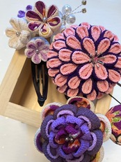 カメリアと小花はパッチン留、ピンクのお花はUピンと3つに分かれています。